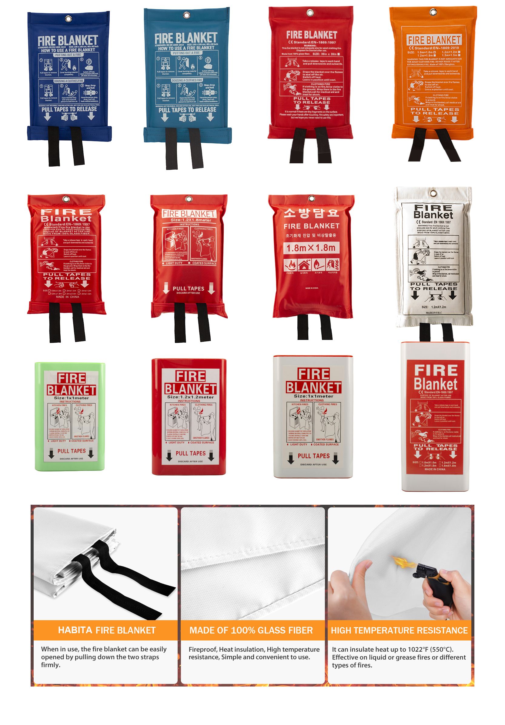 They are commonly used in kitchens, homes, and workplaces, as well as in outdoor or camping settings, for tackling small fires before they become dangerous. Fire blankets are especially useful for fires on people (e.g., clothing catching fire) or small grease fires that can’t be put out with water.