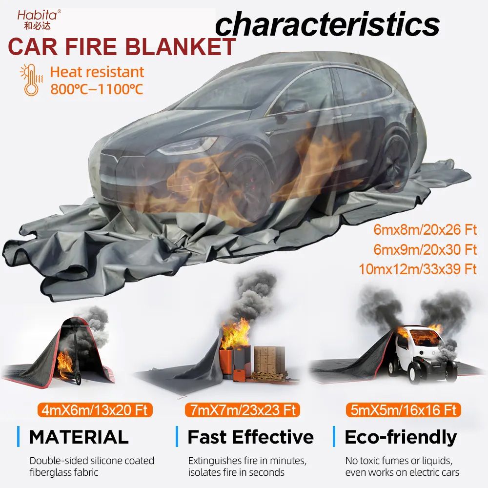 An EV fire blanket is a specialized safety device designed to contain and suppress fires in electric vehicles (EVs), particularly those involving lithium-ion battery thermal runaway. These blankets are made from high-temperature-resistant materials such as fiberglass or silica, allowing them to withstand the extreme heat generated during EV fires .